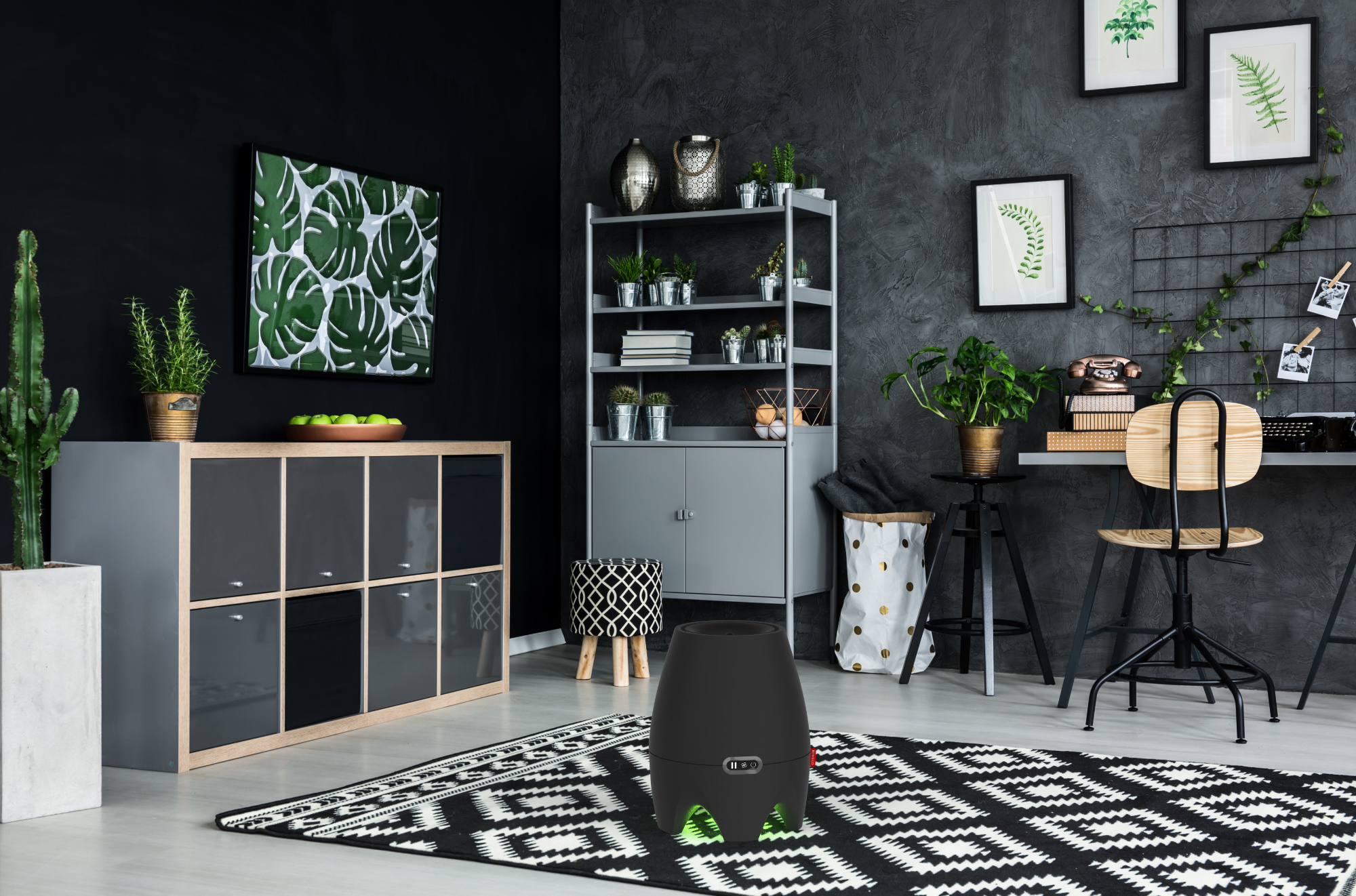 Boneco E200, Reddot Design Award winnaar Luchtbevochtiger Boneco E200, vorm en functie in harmonie met elkaar verenigd. Niet voor niets heeft deze Boneco luchtbevochtiger de Reddot Design Award in de wacht gesleept. Vooral de combinatie van esthetische vormgeving en eenvoudige bediening heeft ervoor gezorgd dat de bevochtiger deze internationaal vermaarde ontwerpprijs heeft gekregen. Aan bovenzijde te vullen luchtbevochtiger Na de luchtbevochtiger te hebben aangezet, moet het apparaat aan de bovenzijde met een gieter worden gevuld. De werking van deze Boneco E200 berust op het zogenaamde koudverdamper-principe. Een hiervoor speciaal bestemd luchtfilterelement wordt in water gedrenkt. Een ventilator trekt de droge lucht uit de kamer langs de vochtige filtermat waardoor het water op een natuurlijke manier verdampt, totdat een ideale luchtvochtigheid wordt bereikt. Bediening en LED-verlichting Met een tiptoets kunt u de ventilator van de luchtbevochtiger in drie standen schakelen. De lucht wordt tegelijkertijd gewassen, stof en geuren worden er aan onttrokken. De Ionic Silver Stick (ISS) houdt de watertank van de bevochtiger bacterievrij. De LED-verlichting, die naar wens kan worden uitgeschakeld, geeft het apparaat en de omgeving een extra speelse flair. Dankzij het eenvoudige ontwerp is het apparaat zeer gemakkelijk te hanteren en schoon te maken. Naast een constante bevochtiging is het ook mogelijk om de ruimte te vullen met aangenaam geurende oliën. Eigenschappen van luchtbevochtiger Boneco E200 De watertank kan makkelijk van bovenaf worden gevuld, of gewoon onder de kraan Eenvoudige bediening Geurcontainer voor etherische oliën Stille en energiebesparende werking dankzij DC-motor LED-verlichting in diverse kleuren Winnaar van de Red Dot Design Award Drie standen Energiezuinige werking Gemakkelijk te hanteren en schoon te maken Automatische uitschakeling bij een lege watertank Ionic Silver Stick® voor het voorkomen van microbiële groei Hoogwaardige componenten met een lange levensduur