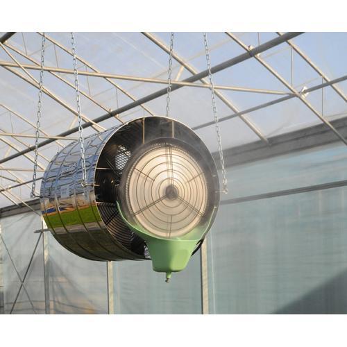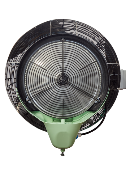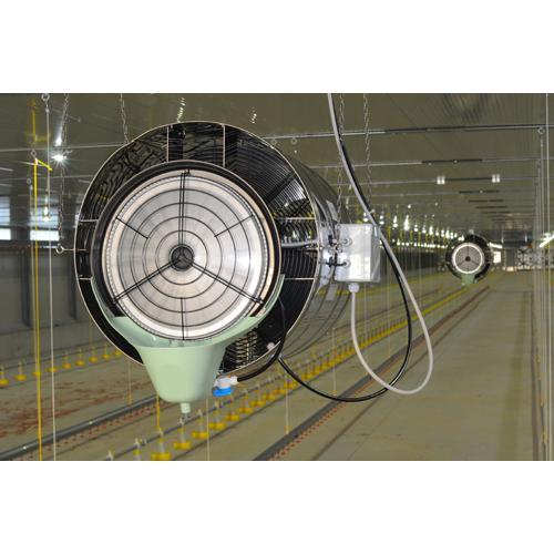 Industriële luchtbevochtiger en adiabatische koeler Franco UX56M is een hangmodel luchtbevochtiger die breed inzetbaar is. Deze industriële bevochtiger / vernevelaar wordt ingezet voor adiabatische bevochtiging, koeling en ventilatie in magazijnen, industriële ruimtes, (tuinbouw)kassen en agrarische gebouwen. Bevochtiger Franco UX56M heeft een hoge capaciteit luchtbevochtiging tot 720 liter per dag en eveneens een hoge ventilatiecapaciteit, perfect voor het bevochtigen van een grote ruimte. De centrifugale luchtbevochtiger werkt ook als koeling door verneveling van het water. Ventilatiecapaciteit: 6.600 m3 / uur