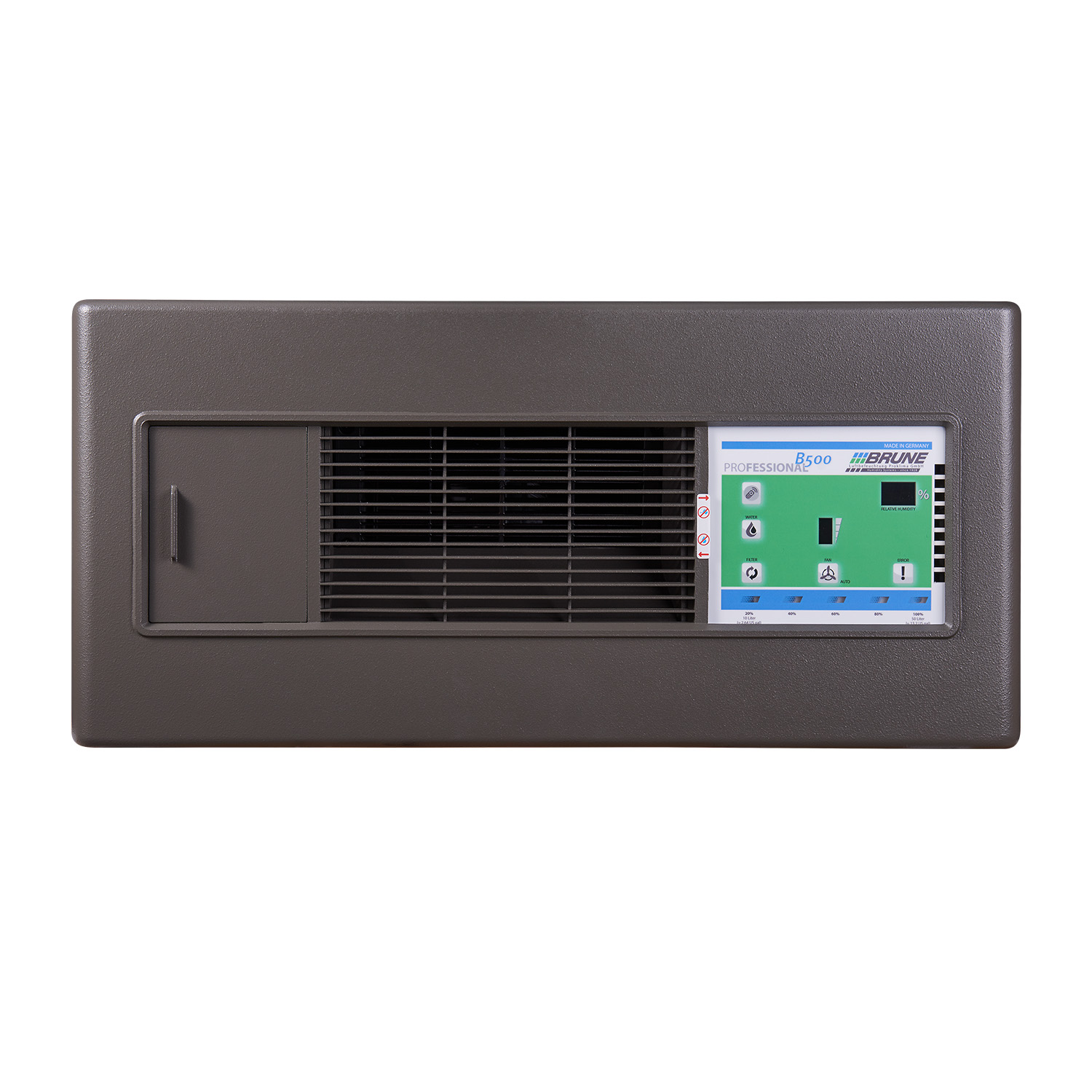 Het niveau van het water, de ventilatie stand en de vochtigheid kunt u gemakkelijk zien op het display. Wanneer de filter vervangen moet worden, wordt dit aangegeven op het systeem. Wanneer de Brune problemen heeft kunnen deze direct via het alarm, dat in het systeem zit, gemeld worden aan een centrale of externe bron.
