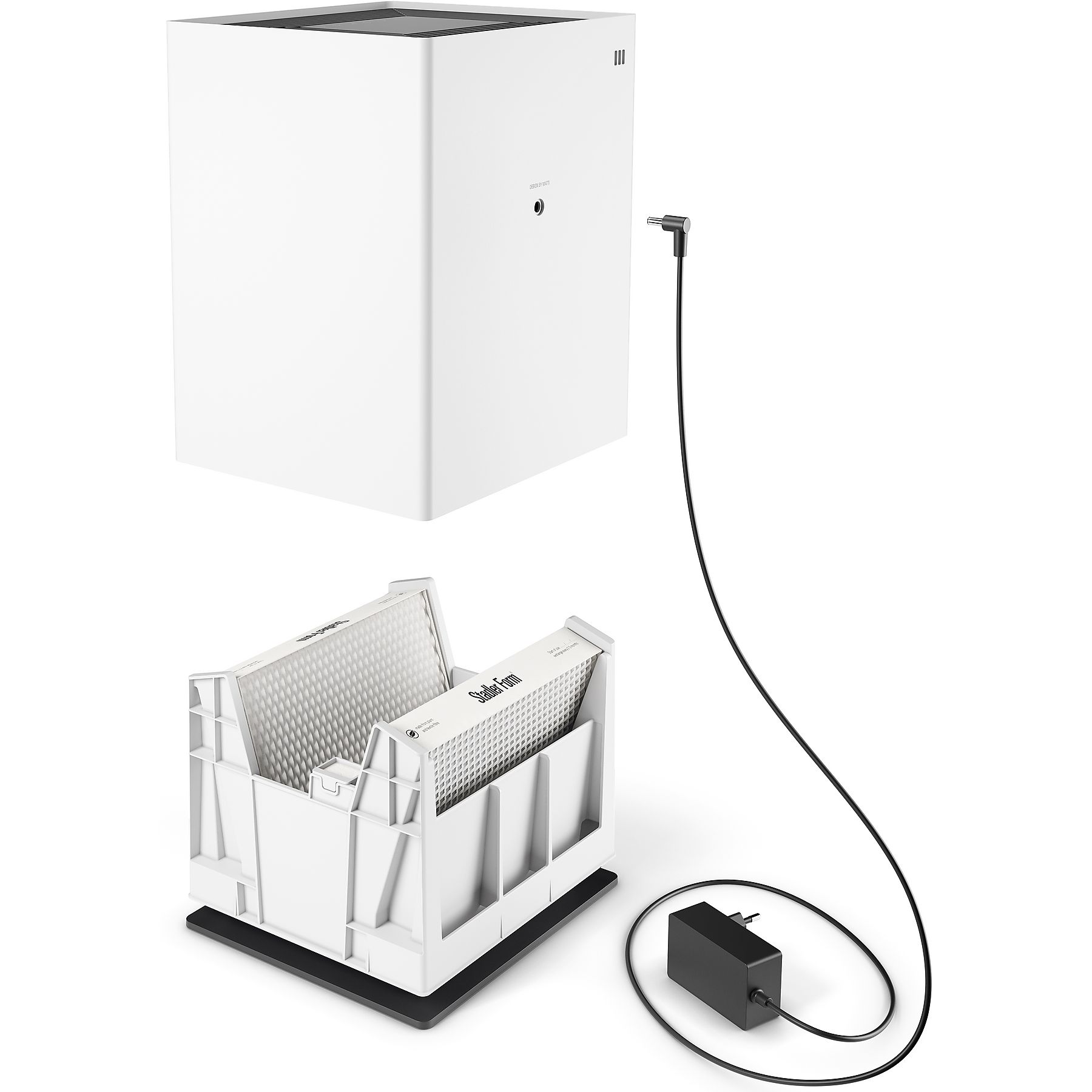 De Stadler Form Noah is een geavanceerde koudwater-luchtbevochtiger die volgens het natuurlijke verdampingsprincipe werkt en tot 800 ml vocht per uur aan de lucht toevoegt. Dankzij deze efficiënte technologie zorgt Noah voor een gezond en gelijkmatig binnenklimaat in ruimtes tot 110 m² / 275 m³, zonder risico op overbevochtiging of schimmelvorming. De zelfregulerende werking garandeert dat de lucht altijd precies zoveel vocht opneemt als nodig is bij de heersende temperatuur. Geïntegreerde digitale hygrostaat De geïntegreerde digitale hygrostaat maakt het mogelijk om de gewenste luchtvochtigheid nauwkeurig in te stellen. In de automatische modus verhoogt Noah snel de luchtvochtigheid en houdt deze vervolgens constant. Zodra het ingestelde niveau is bereikt, schakelt het apparaat automatisch uit om energie te besparen en hervat het de werking alleen wanneer dat nodig is. Met een laag energieverbruik van slechts 2–36 W is Noah bijzonder zuinig in dagelijks gebruik. Geïntegreerde geurcontainer Voor een extra gevoel van welzijn beschikt Noah over een geïntegreerde geurcontainer waarmee je eenvoudig een paar druppels van je favoriete essentiële olie kunt toevoegen. Zo verspreidt het apparaat een aangename geur samen met de bevochtigde lucht en creëer je een ontspannende en uitnodigende sfeer in huis. Touch-paneel of draadloos via Wi-Fi De bediening is flexibel en gebruiksvriendelijk: je kunt Noah rechtstreeks via het intuïtieve touch-paneel aansturen of draadloos via Wi-Fi met de speciale smartphone-app. Hiermee controleer je op elk moment de actuele luchtvochtigheid, het waterniveau en de status van het apparaat, en kun je zelfs op afstand de turbo-modus inschakelen zodat je thuiskomt in een optimaal binnenklimaat. Het waterreservoir van 3,6 liter kan eenvoudig tijdens gebruik worden bijgevuld via de handige zijopening met verlichting, of los worden gevuld onder de kraan. Noah is uitgerust met twee hoogwaardige verdampingsfilters die het water effectief zuiveren en bijdragen aan een hygiënische werking. Dankzij een geluidsniveau vanaf slechts 27 dB werkt Noah fluisterstil op de laagste stand en is hij ideaal voor gebruik in slaapkamers of kinderkamers. Voor een ongestoorde nachtrust kunnen het display en de LED-verlichting worden gedimd of volledig worden uitgeschakeld. De Stadler Form Noah combineert natuurlijke bevochtiging, slimme functies en modern design in één krachtig apparaat, de perfecte oplossing voor een comfortabel en gezond binnenklimaat, het hele jaar door.