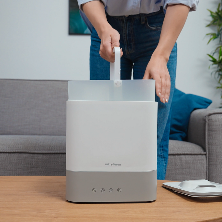Dankzij een maximale bevochtigingscapaciteit van 400 ml per uur zorgt de Stylies Astra in korte tijd voor een comfortabel en gezond binnenklimaat. Het royale waterreservoir van 5 liter maakt langdurig gebruik mogelijk zonder frequent bijvullen.